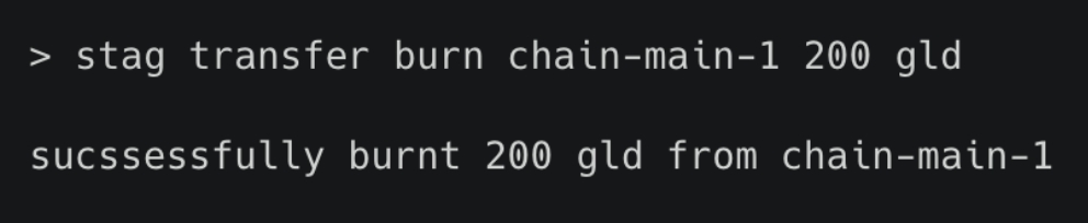 $ stag transfer mint chain-main-1 1000 gldIn return, the response should look like this: